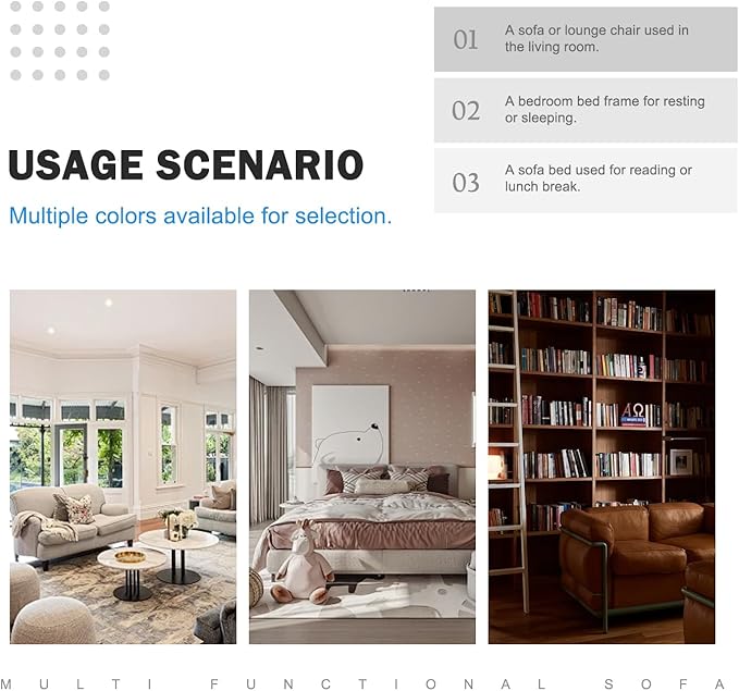 - Embrace elegance without sacrificing space. sleeper Sofa Bed is the ideal solution for tight corners, small apartments, or home offices. Its space-saving design is complemented by a convenient side storage bag, ensuring your essentials are always within reach without cluttering your living area.